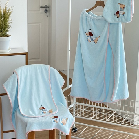 Karikatür köpek yavrusu-ilham kadın kuru saç bonesi banyo havlusu takımı cilt dostu yüz yıkama havlu su emici çabuk kuruyan Wrap sevimli
