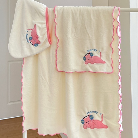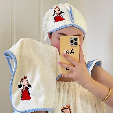Yaz kız çabuk kuruyan banyo havlusu işlemeli karikatür desen banyo ve şampuan çanta ev emici havlu