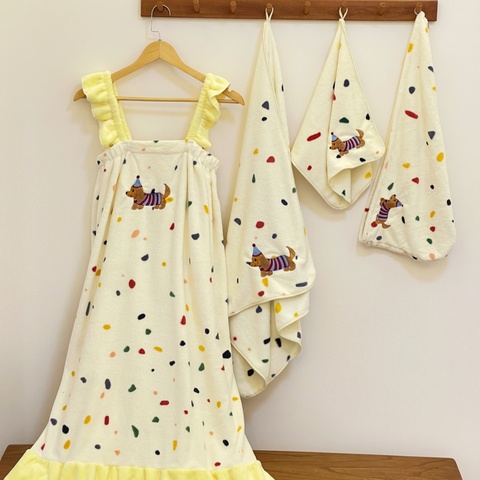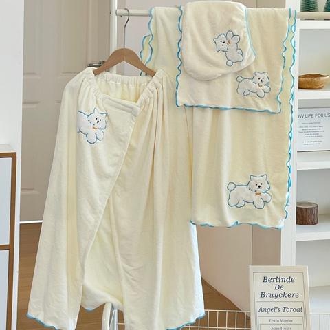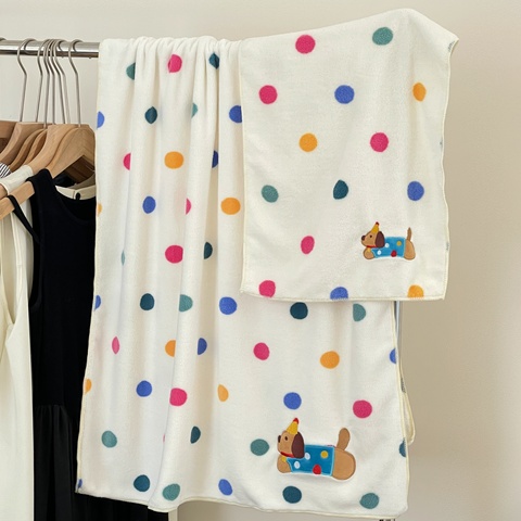 Kadın üç parçalı Set süper emici çabuk kuruyan kalın banyo havlusu takımı Polka Dot köpek tasarımı, yüksek değerli banyo havlusu