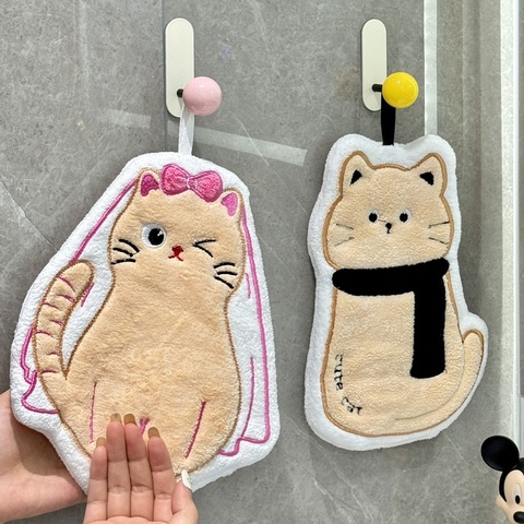 Sevimli kedi işlemeli pamuk havlu güçlü su emme ile mutfak havlusu kadife kumaş ev el havlusu olmadan