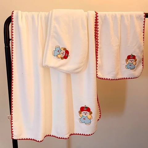 Kadın sevimli ayı yetişkinler için banyo havlusu takımı su emici ev banyo keseler saç kurutma şapka üç parçalı Set silin