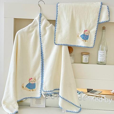 Sevimli 4-piece yumuşak mercan kadife kedi kulaklık havlu seti ev ve yurt için uygun hızlı kurutma emici banyo havluları