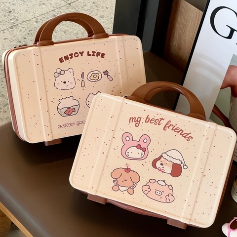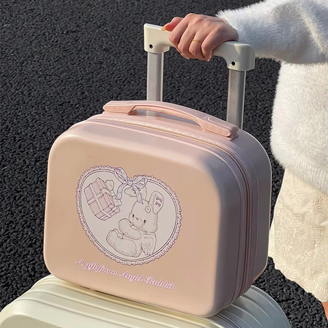 Estuche de maquillaje de mano de gran capacidad para mujer, portátil, para niña, corazón, viaje, 14 pulgadas, Mini caja de equipaje, corta distancia